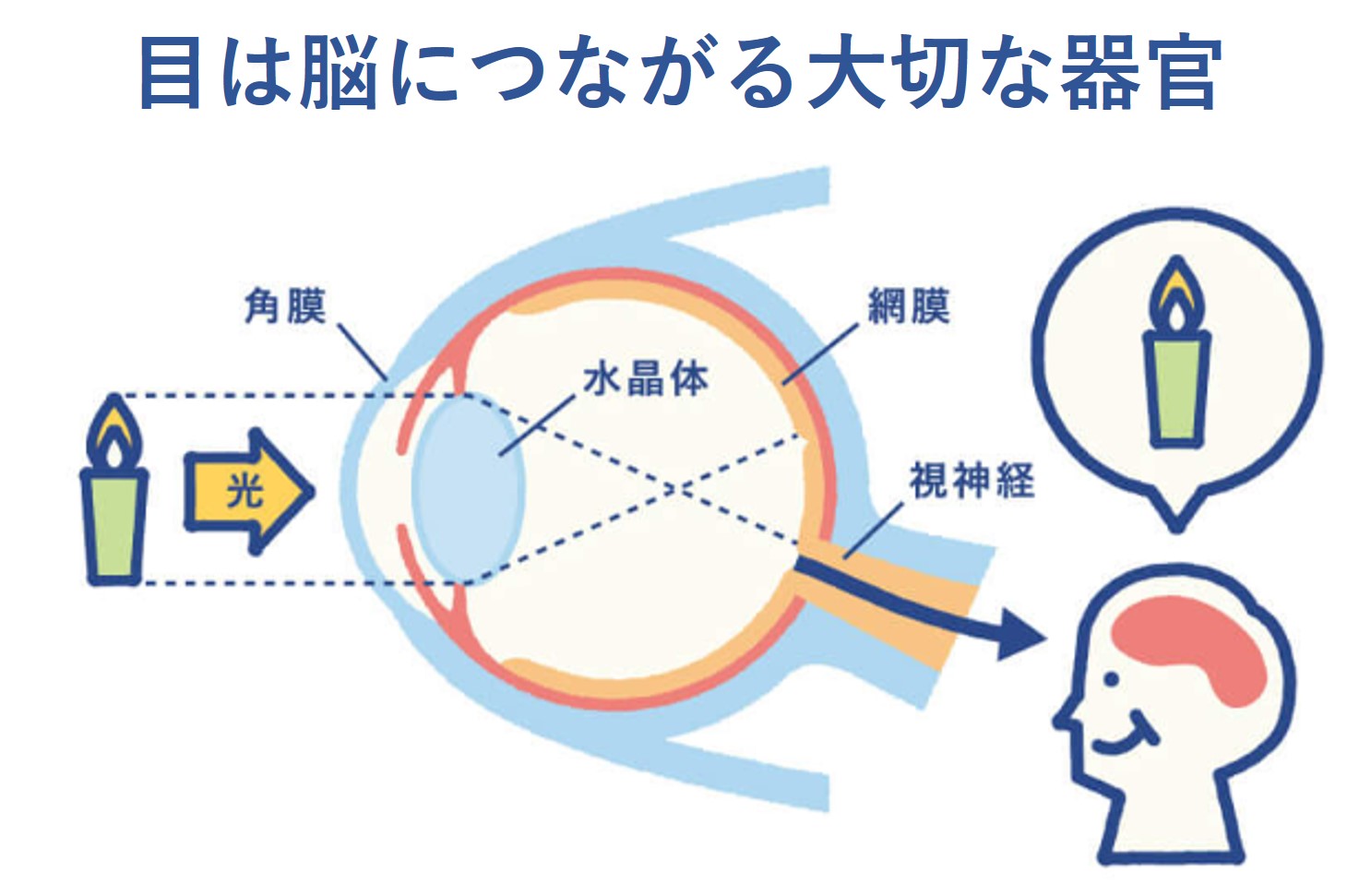 「目」は視神経を通じて「脳」と直接つながりを持つ器官です。目のぼやけ・かすみによる視覚情報の減少は、脳に送られる刺激の低下につながります。