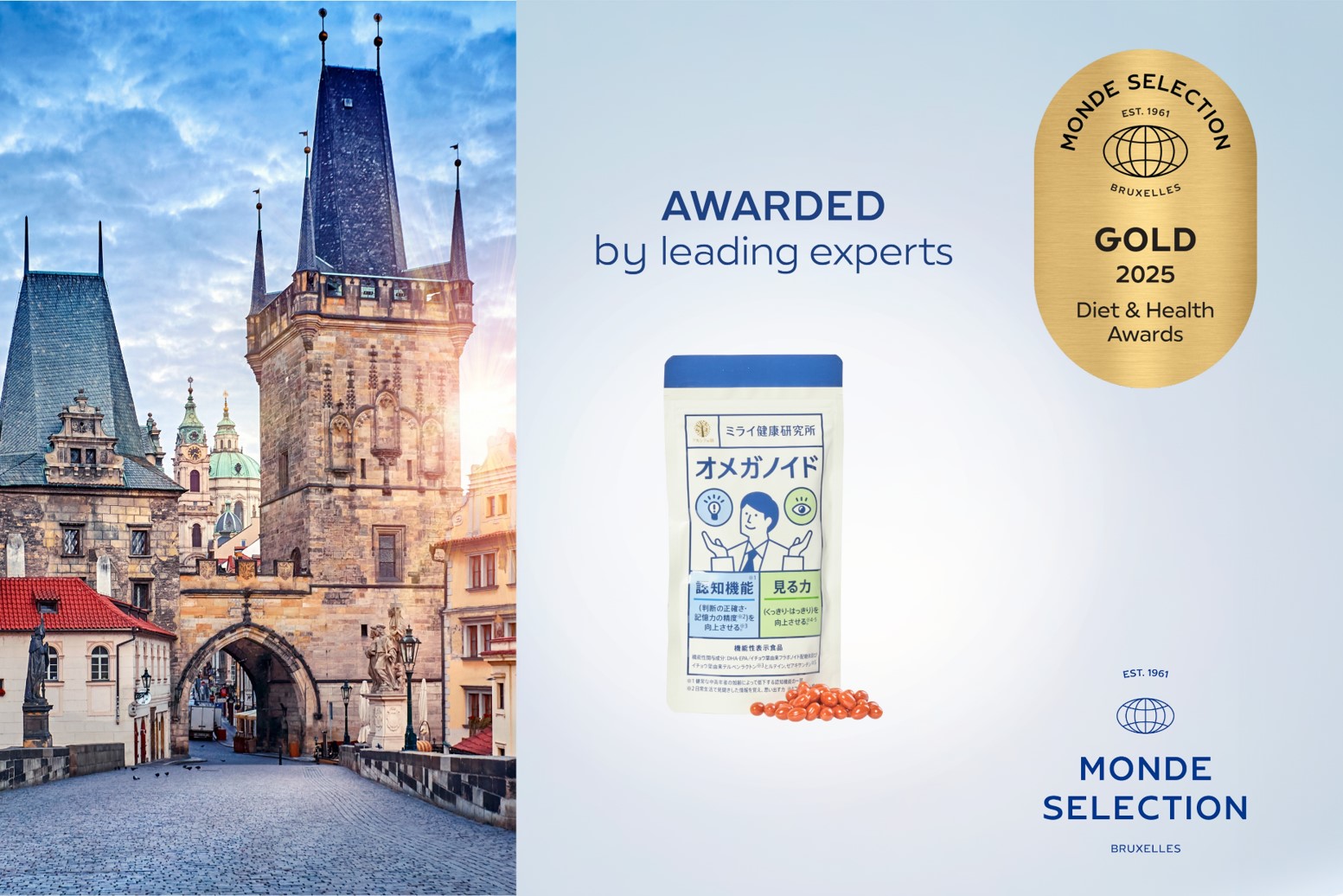 「モンドセレクション」は国際的な食品品評会で、世界中の食品、飲料、化粧品、健康食品などの消費財について評価しています。この品評会は1961年にベルギーで設立、約90カ国で展開されており、ダイエット&健康製品の品質評価においても屈指の権威です。エントリーされる商品は国際的に著名な専門家が厳正な審査の上、それぞれの賞が決定されます。 今回の受賞により、『オメガノイド』が世界的な品質基準の製品であることが評価されました。今回の権威ある賞の受賞により、消費者が高い信頼のもと『オメガノイド』を選択していただけるきっかけになると考えています。