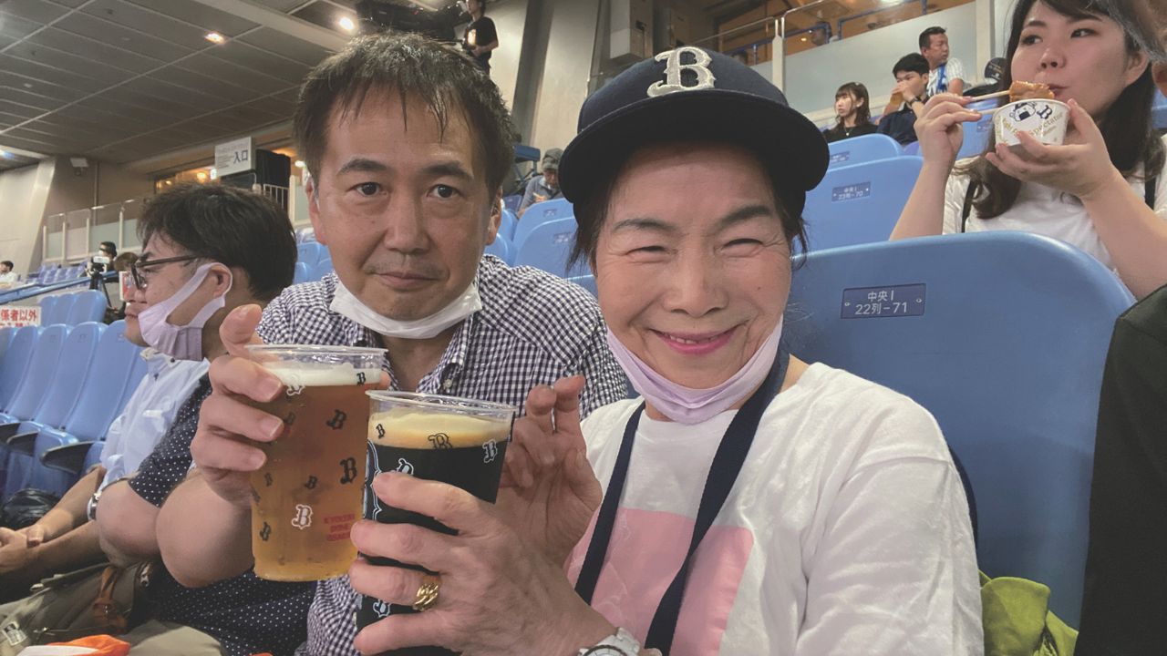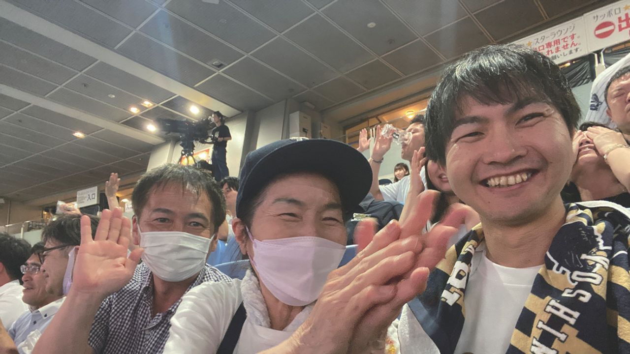 「ここ(大阪)で試合があるときは毎試合来ています。応援団にも入っていて、ファンクラブのゴールドメンバーにもなっています。もともと、亡くなった主人が日本ハムファイターズの大ファンだったんですよ。大阪で試合があるときに連れてきてもらってたんです。そのころの野球ファンの熱心さに驚いて、こんなに凄いんだと。それで地元の阪急ブレーブス(オリックス・バファローズの旧名)を応援するようになったんです。大声を出して応援すること、これも主人が教えてくれた楽しみで、元気なうちはずっと続けていこうと思います。それに、観戦に行くのは一人ですが、球場に来るとファンの方に会えるでしょ?で、一緒に応援して、終わったら「またね」といって別れて言えるんです。その日限りですけど、知らない人でもファン同士だからすぐに仲良くなれて楽しいんです。」