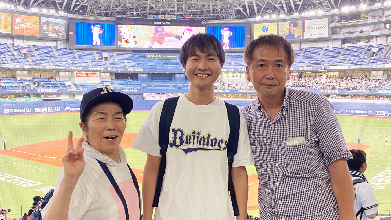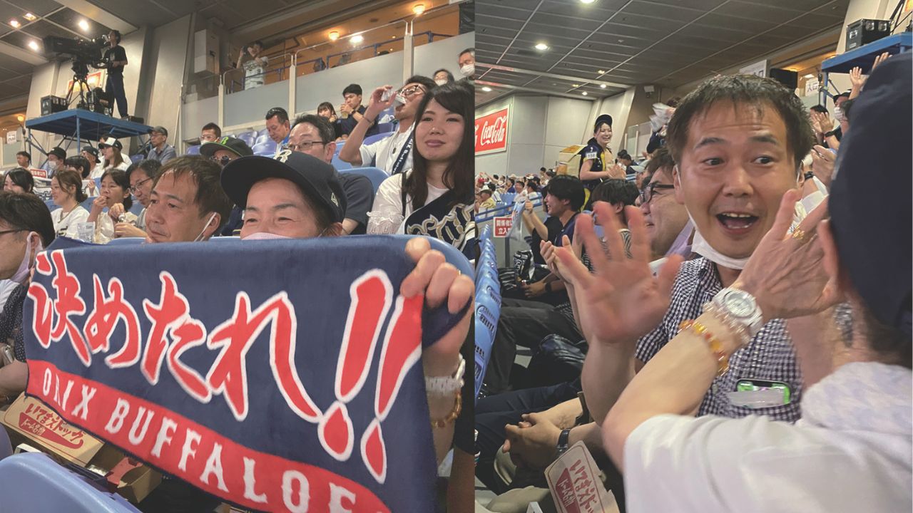 取材当日もホームグラウンドの京セラドームで開催された、千葉ロッテマリーンズとの試合の応援にご一緒しました。ビールを飲んだり、京セラドームで人気の「いてまえドッグ」を食べたり、とにかく楽しんでいる三島様。「元気と明るさが取り柄なので、まだまだ人生楽しみまっせ!」と笑っておられました。試合は3回、オリックスの4番打者セデーニョ内野手の満塁ホームランで4点を先制した後、5人の投手で継投し、勝利を飾りました。