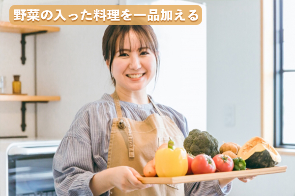 そして、野菜の入った料理を何か一品加えるだけでも、血糖値の急上昇を防げます。