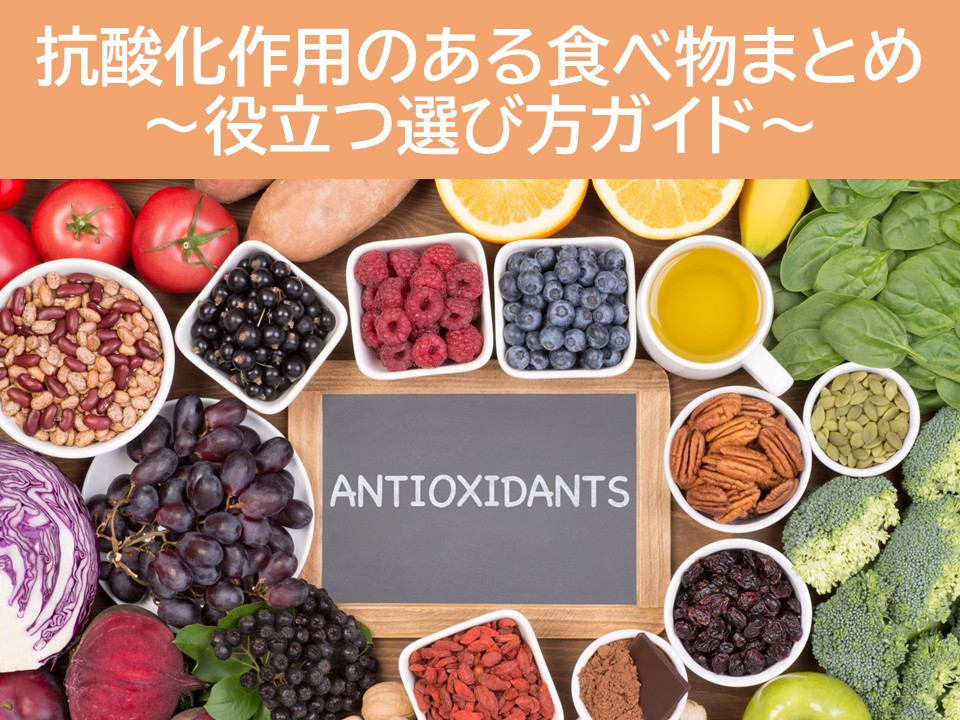 そもそも人間の体には抗酸化酵素があり、活性酸素に対抗していますが、加齢とともに減少していきます。そこで抗酸化力の強い食品を摂取することは大変重要なことです。食品に含まれるビタミンやポリフェノールは抗酸化力を有し、老化や生活習慣病リスクを低減すると言われています。ぜひ意識して摂り入れていきましょう。