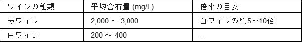 赤ワインのポリフェノール量は白ワインの5-10倍