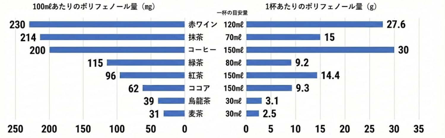 飲み物別ポリフェノール量の比較