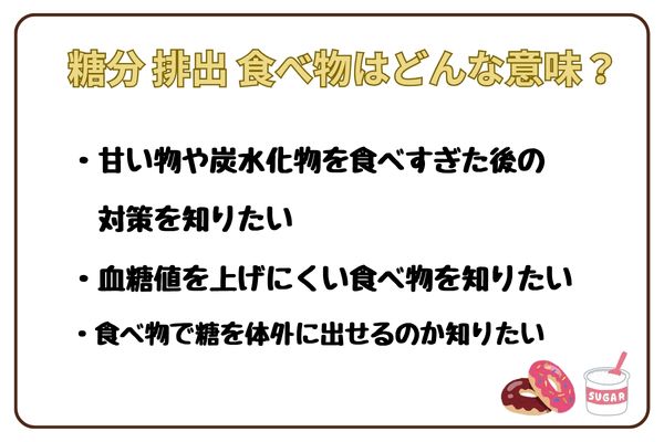 「糖分を排出する食べ物」という言葉からは、体の中の糖を外へ出してくれる食品があるような印象を受けるかもしれません。しかし実際には、この言葉はさまざまな意味で使われていることがあります。ここでは、「糖分 排出」という言葉がどのような疑問と結びつきやすいのかを整理します。