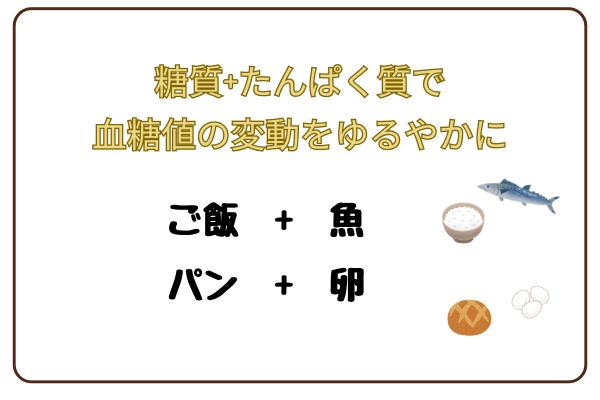 糖質のみの食事に比べて血糖値の変動が緩やかになりやすい