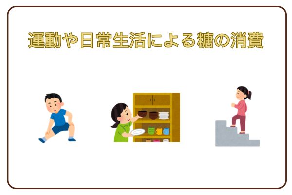 食べ物によって体内の糖分を直接体外へ排出することは基本的にありません。食事で摂取した糖質は消化されてブドウ糖となり、血液中に吸収された後、次のように利用されます。